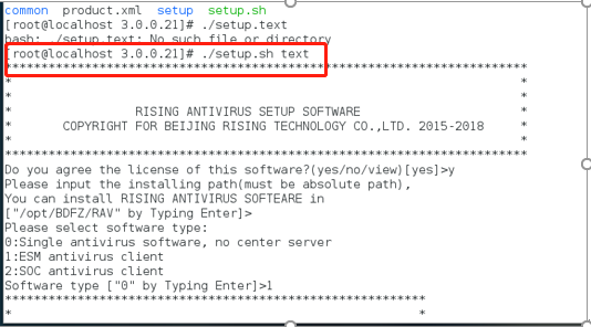 令./setup.sh text 进行安装,输入 yes 确认,随后会提示安装到哪个目