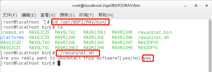 令./ravuninst.sh 执行卸载,并输入 yes 确认,即可卸载瑞星杀毒。