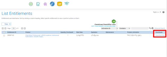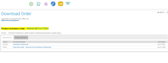 2. 复制标黄高亮的ChemDraw激活码,以备激活使用。点击第一行ChemDraw Professional进入下载页面。